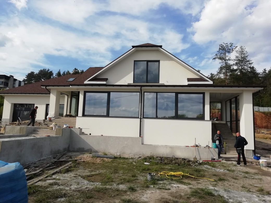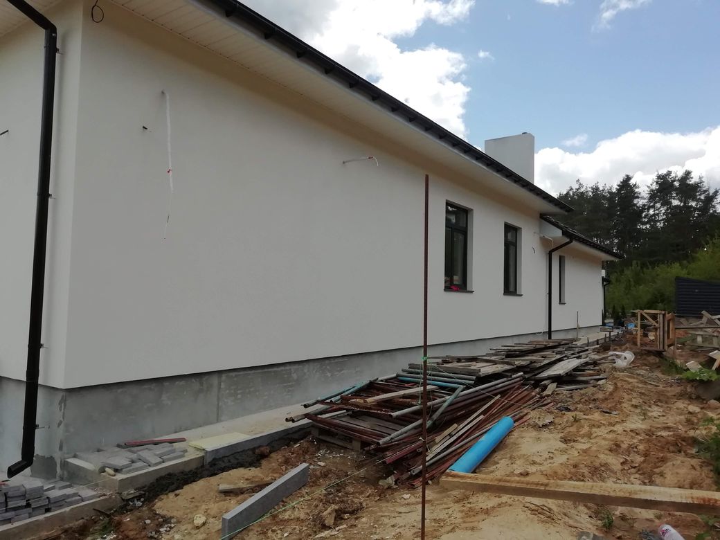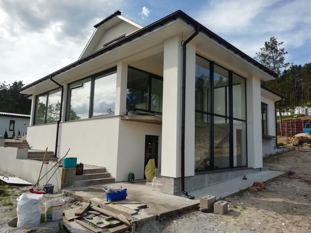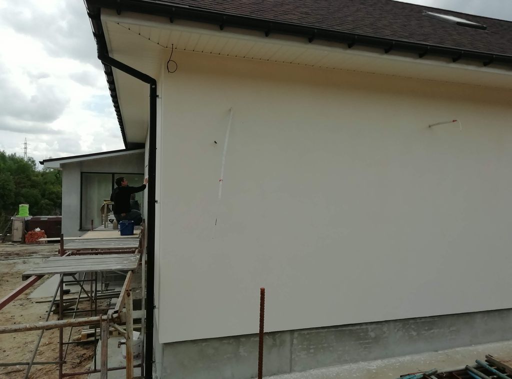 Найголовнішою ізюминкою даного проекту стала новітня фасадна штукатурка ТМ Majsterpol якою зроблено фасад даного будинку спеціалістами ExpertFasad. Ця штукатурка має простий спосіб нанесення, що гарантує естетичний вигляд структури. Після повного висихання та затвердіння покриття має стійкий колір і є невразливим до несприятливих погодних умов: низьких температур, інтенсивних опадів чи ультрафіолетового випромінювання. Містить у своєму складі інноваційний біоцид у капсульованій формі, який забезпечує довготривалий захист покриття від мікробіологічної корозії.